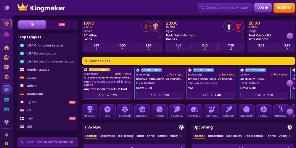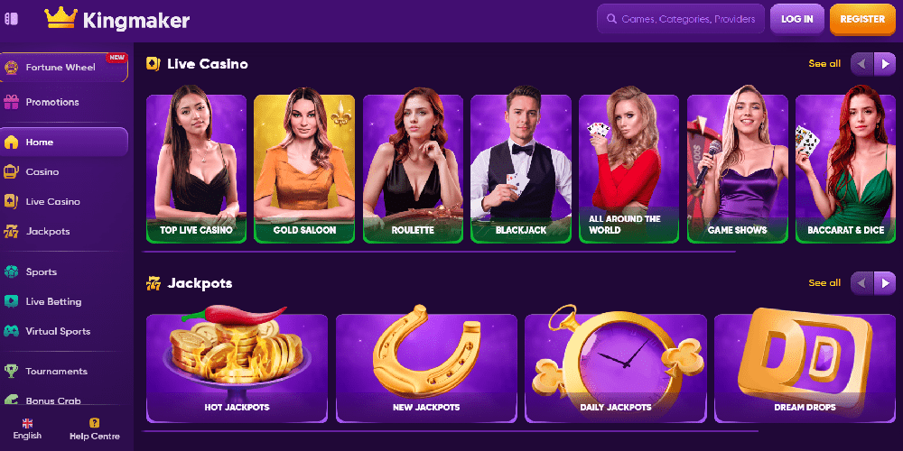 Selbst die wählerischsten Spieler werden in KingMakers Auswahl von über 4000 hochwertigen Spielen etwas finden, das ihnen gefällt. Kraken Bay, Lucky Dwarfs, Cash of Gods, Wealthy Sharks, Juicy Fruits Multihold und unzählige weitere sind nur einige der Tausenden von Slots mit Neuerscheinungen.