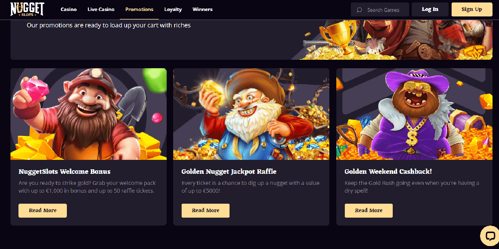 Not long ago, NuggetSlots, one of the most recent 2024 online casinos, welcomed its initial players. There, users have access to over four thousand items developed by illustrious brands like Microgaming, Pragmatic Play, Play'N Go, Thunderkick, and countless more. There are virtual table games, slots (both old and new), crash games, and top-notch live casino lobbies to choose from. In addition, there is an enticing Welcome Bonus available to new players, as well as Weekend Cashback and other loyalty advantages for existing members.