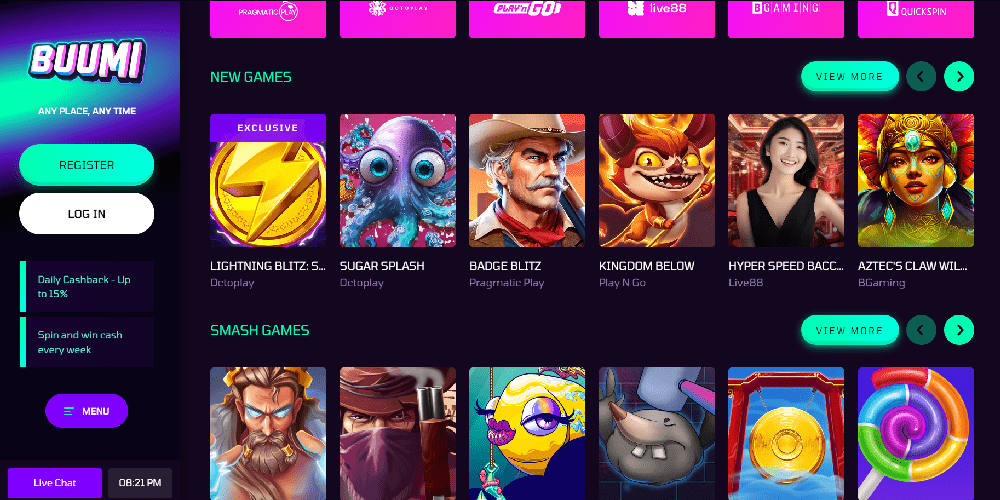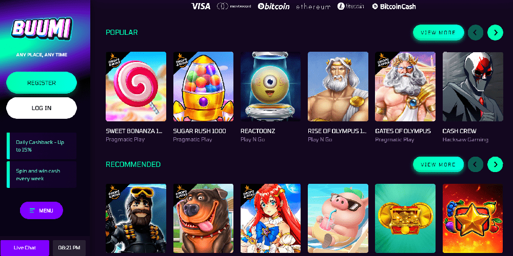Buumi er et nettkasino som debuterte i 2022. På fritiden kan du lese den omfattende katalogen med over 3000 produkter. Du kan spille en rekke kort- og bordspill, både online og i sanntid, og et bredt utvalg av spilleautomater, inkludert de siste utgivelsene.