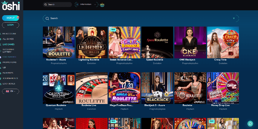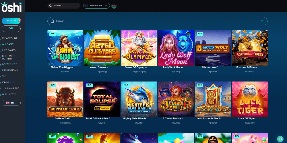 Til tross for nettstedets avanserte utseende, er Oshi Casinos navigering fortsatt ganske grei.