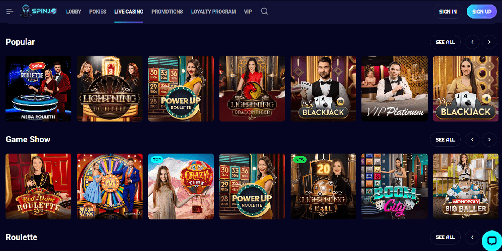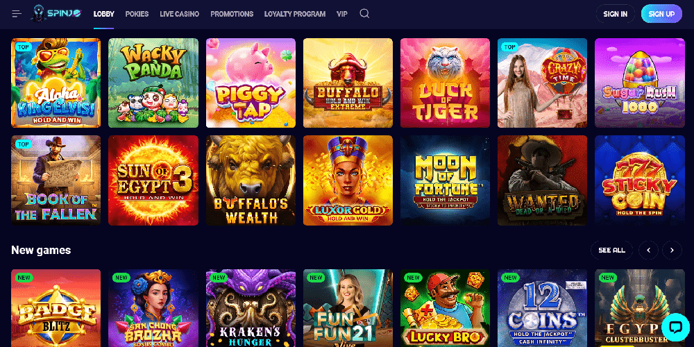 SpinJo tilbyr et førsteklasses spillbibliotek som inkluderer både klassiske og nye utgivelser på tvers av alle sjangere. Spill et bredt utvalg av spilleautomater, inkludert de siste utgivelsene som Heart of Cleopatra, Mystic Charms, Epic Charms, Out of the Field: The Goldmine Planet, Fruity Treats og utallige flere.