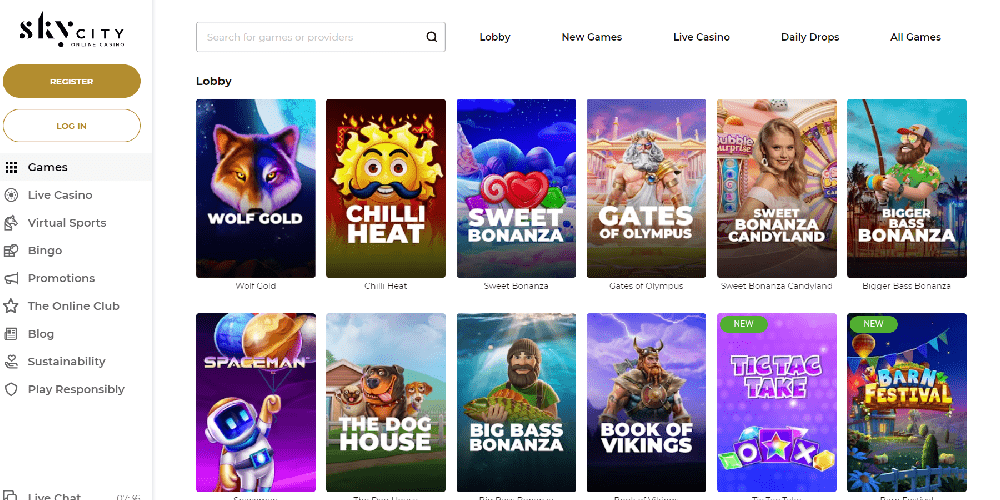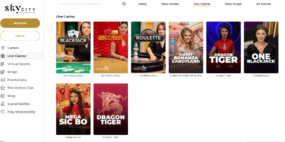 A large variety of online casino games, including many with live dealers, are available at SkyCity. Plus, you can find every one of the most played casino games there.